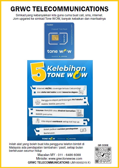 GRWC TELECOMMUNICATIONS (JM10000215-X) Admin: Mazalan MY H/Phone & WhatsApp: 011-6486 6088 Email: admin@grwctonewow.com