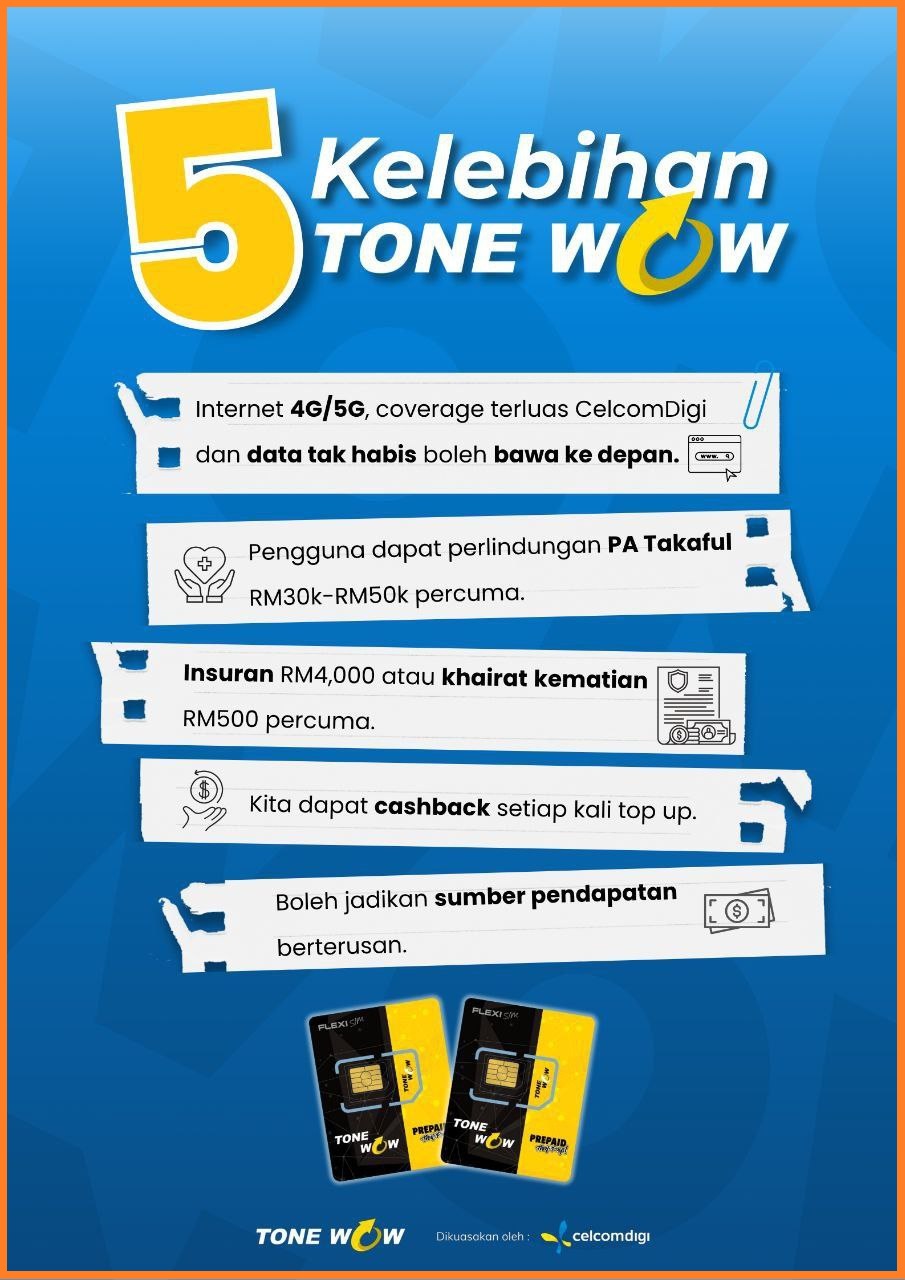 SIMKAD YANG KEBANYAKKAN KITA PAKAI CUMA BOLEH CALL, SMS DAN INTERNET SAHAJA. JOM UPGRADE SIKMAD KITA KE SIMKAD TONE WOW. BANYAK KEBAIKAN DAN MANFAATNYA YANG KITA AKAN DAPAT