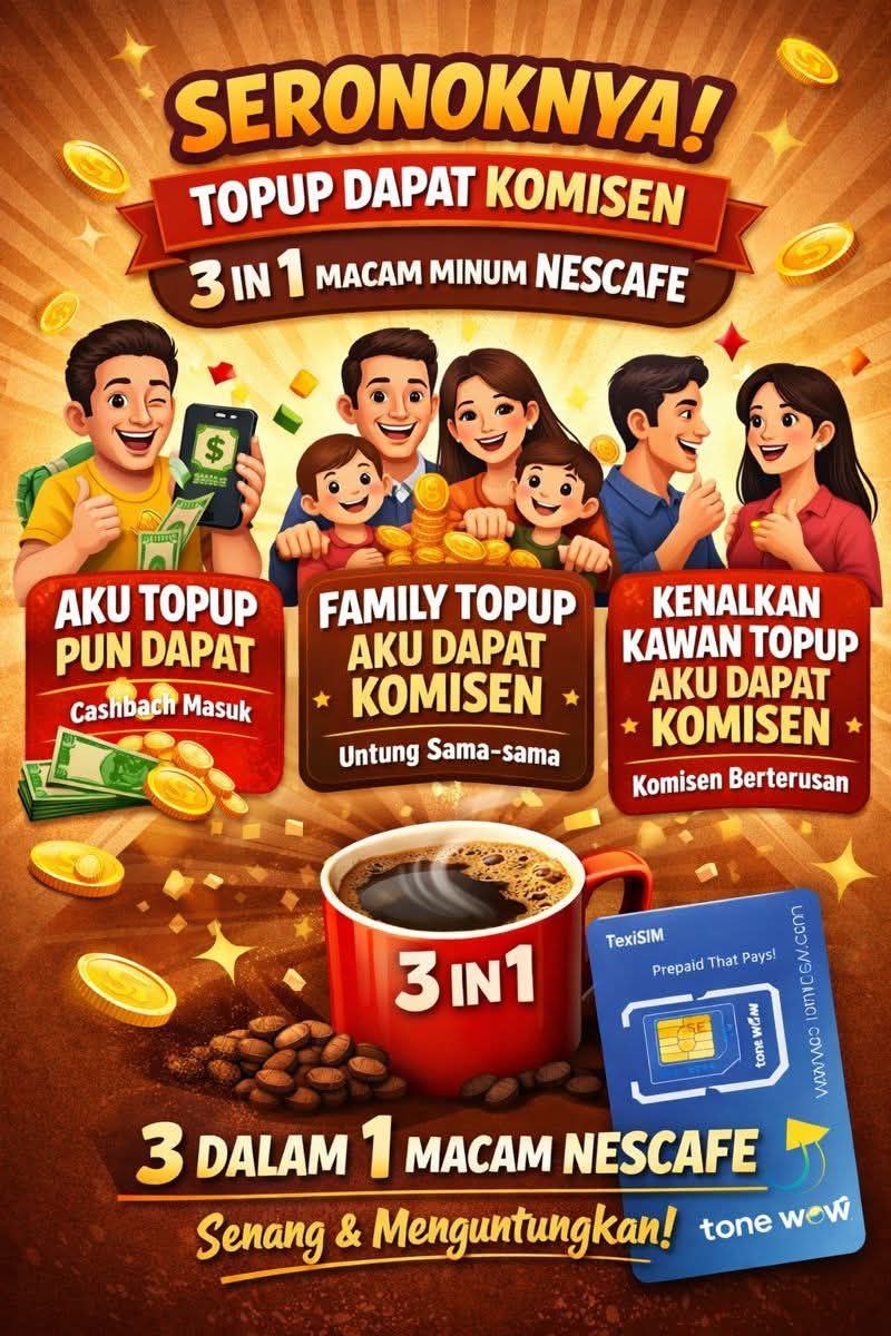YANG BAGUSNYA.... ANAK-ANAK 13 TAHUN BOLEH JADI RESELLER SIMKAD TONE WOW. BILA UMUR 18 NANTI, NAK SAMBUNG BELAJAR, BUKA PERNIAGAAN SENDIRI TAK PAYAH SUSAH-SUSAH BUAT PINJAMAN NAMPAK TUAN-TUAN?
