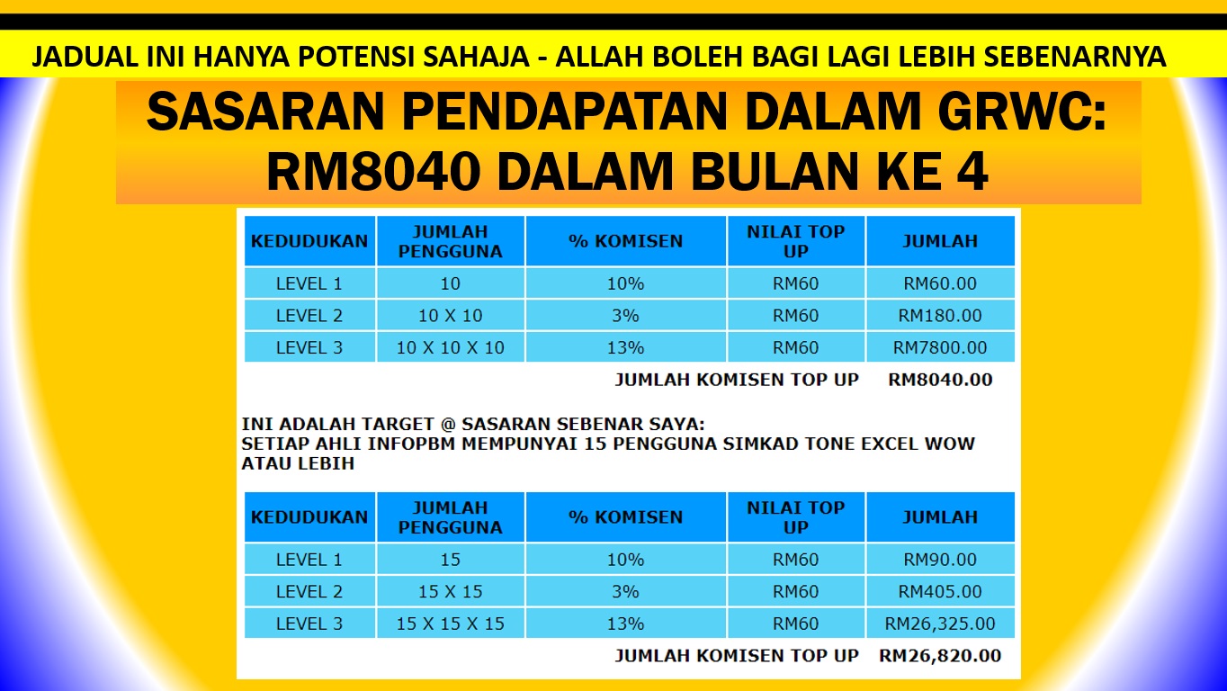 Ramai orang ada income RM4000 setiap bulan, seterusnya ramai orang ada income lebih RM8000 sebulan dan lama kelamaan ramai orang ada income lebih RM25K setiap sebulan kerana ramai user grwctonewow.com dah naik ke rank Branch Center Untuk pengetahuan anda, berlambak orang ada income belasan ribu, puluhan ribu setiap bulan dalam Program Rujukan Tone WOW. Budak belasan tahun pun ramai ada income lebih RM4K setiap bulan